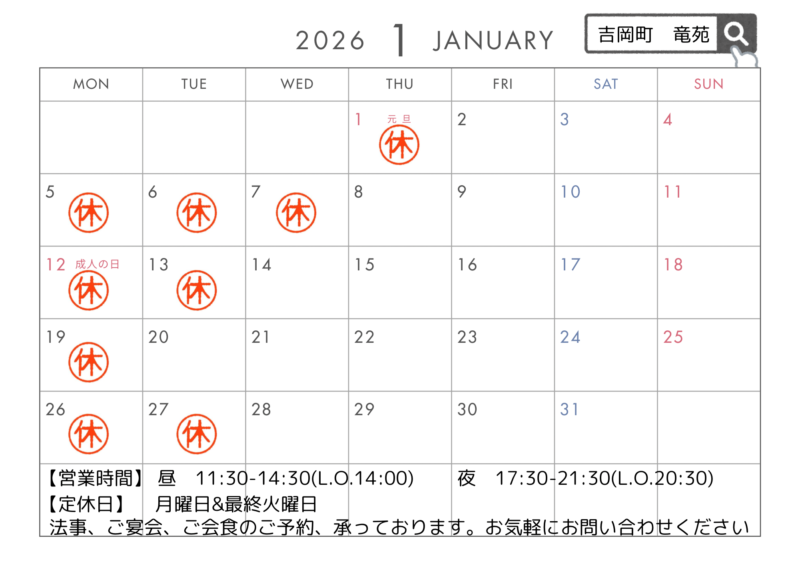 1月のお休み